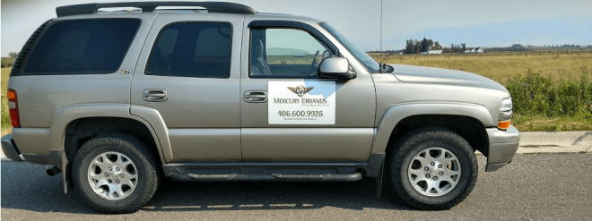 We’re MERCURY ERRANDS — with the purple wings on the side of our vehicles. For ‘speedy’ and ‘trustworthy’ courier service, give us a call at 406-600-9925. We get things done for you.